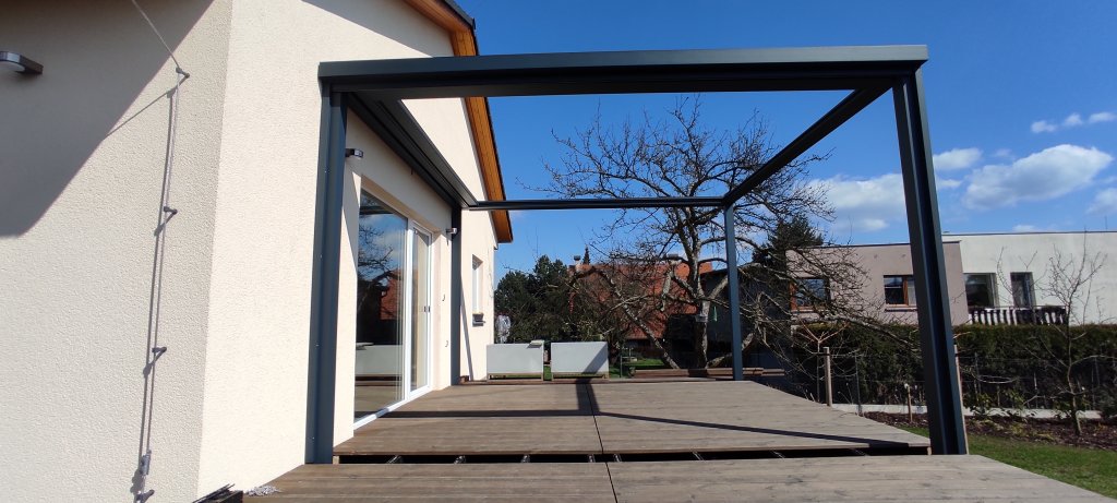 Pergola Cubola a svislá markýza Screen Zip, realizace Bohemiaflex CS