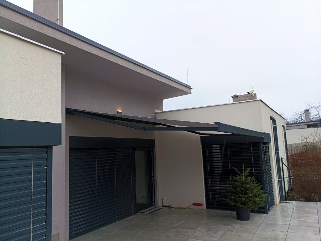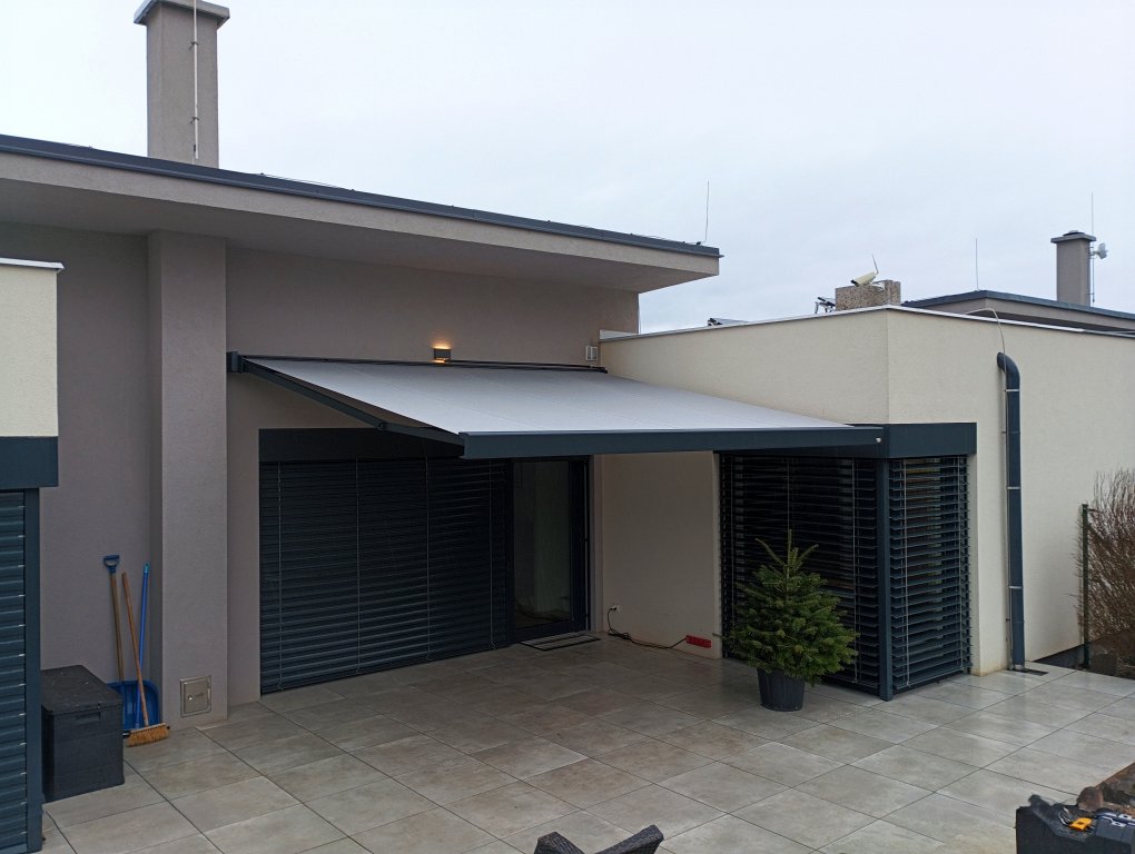Kazetová markýza Alandbox, RAL 7016 antracitová, 4000 x 3500 mm, realizace Bohemiaflex CS