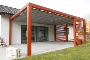Zastínění Latin na dřevěné pergole, realizace Bohemiaflex CS