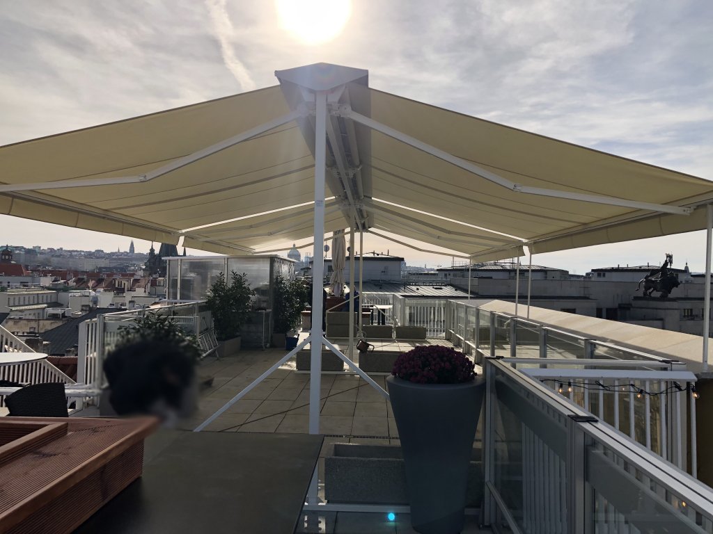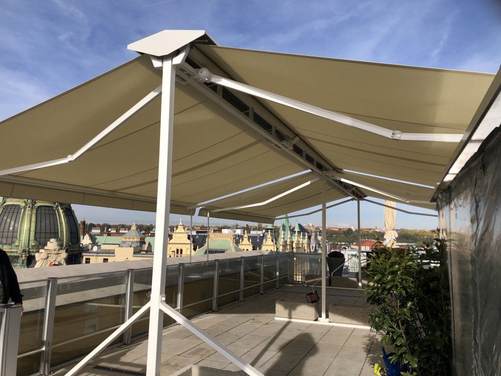 Markýzový přístřešek, 11 800 x 6 000 mm, Praha, realizace Bohemiaflex CS