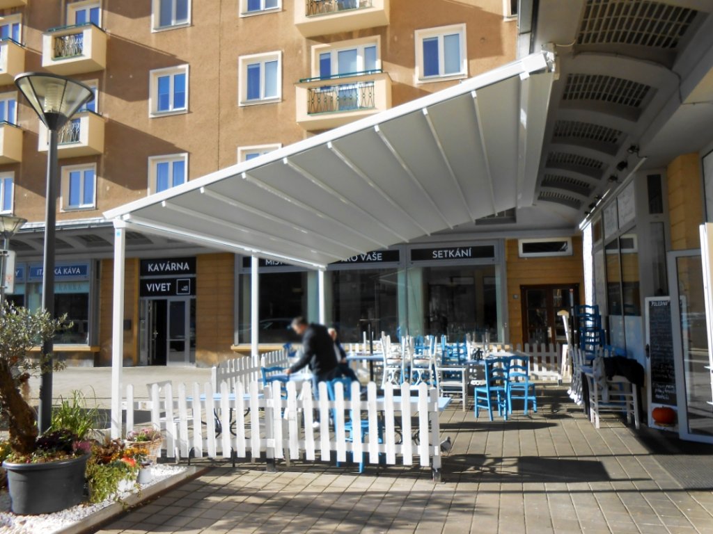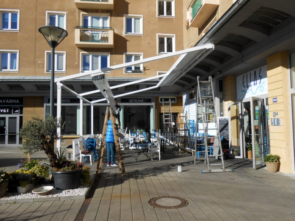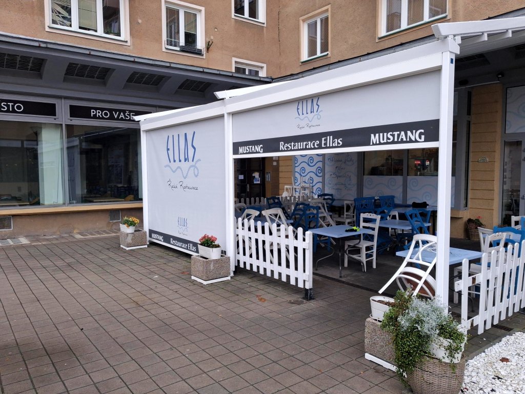 Pergola Linie + Screen Zipy, restaurace Ellas Ostrava, realizace Bohemiaflex CS