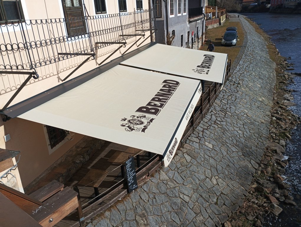Horizontální markýza s jednoduchým tvarem a rychlou montáží. Je vhodná pro komerční i soukromé prostory.