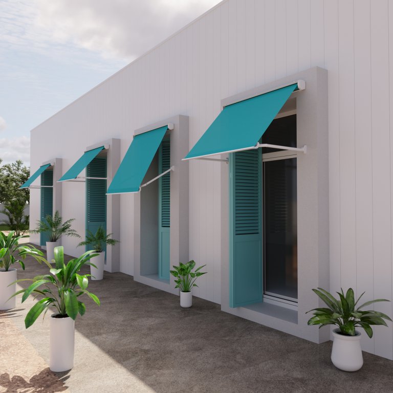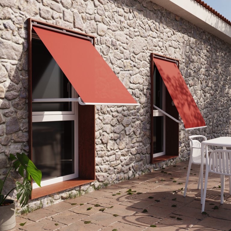 Klasická výklopná markýza pro zastínění balkonů a lodžií. Často se využívá i při stínění výloh obchodů, kdy je potah opatřen potiskem v brandu zadavatele.