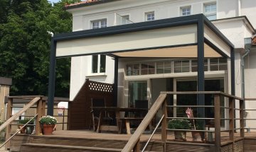 Pergola se stahovací střechou patří mezi nejmodernější a nejvariabilnější zastínění. Standardně je namontovaná u zdi domu, ale není výjimkou ani samostatně stojící provedení.