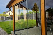 Tento bezrámový zasklívací systém povýší vzhled jakékoliv pergoly a umožní její využívání po delší čas; s topnými tělesy až do pozdního podzimu.